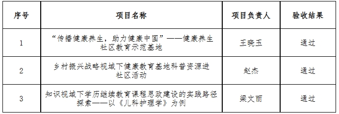根据《广东省教育厅关于实施省继续教育质量提升工程的通知》(粤教职函〔2021〕34 号)《广东省教育厅关于公布 2021 年省继续教育质量提升工程项目立项名单的通知》(粤教职函〔2022〕12 号)《广东省教育厅关于公布2022年省继续教育质量提升工程建设类项目立项名单的通知》(粤教职函〔2023〕23号)要求,我校已完成本校及相关单位的项目验收工作,现将验收结果予以公示(详见附件)。